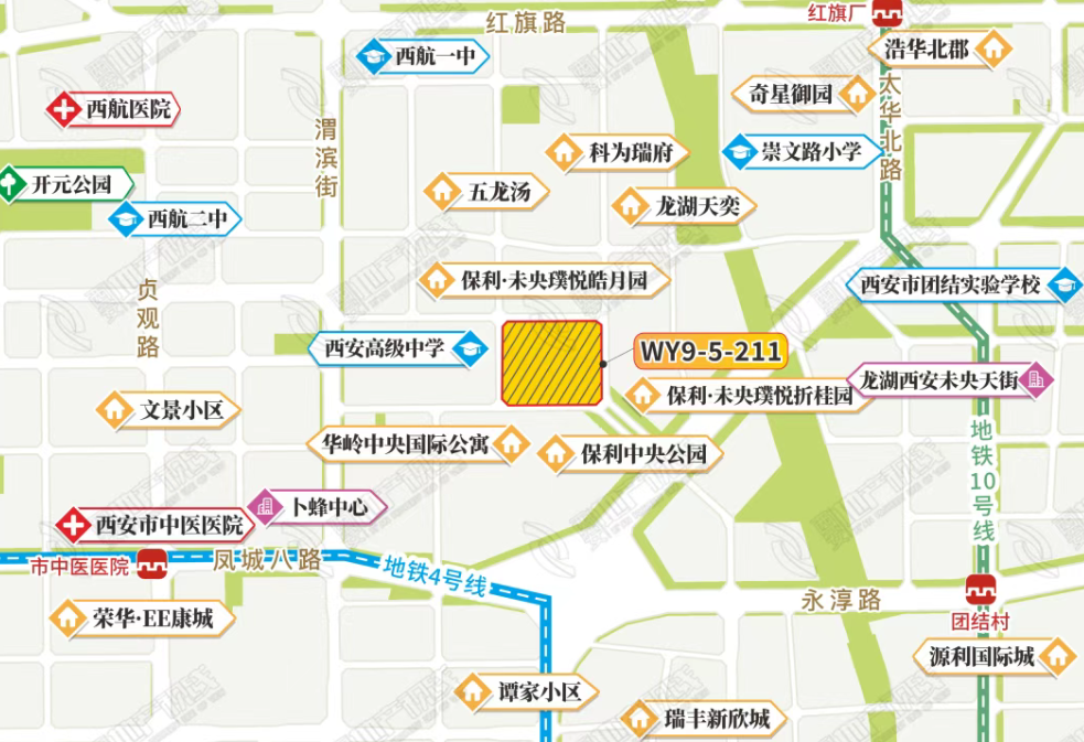 对于具体的地块位置,西安地产视线的图非常清晰,一目了然。