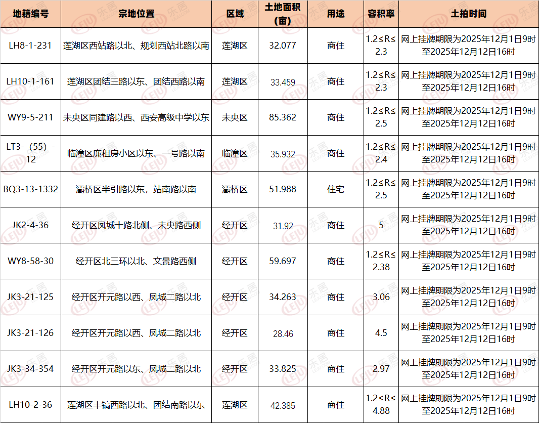 根据最新公告,12月西安市集中挂牌出让11宗国有建设用地,总面积达469.37亩,网上挂牌报价截止时间为12月12日16时整。