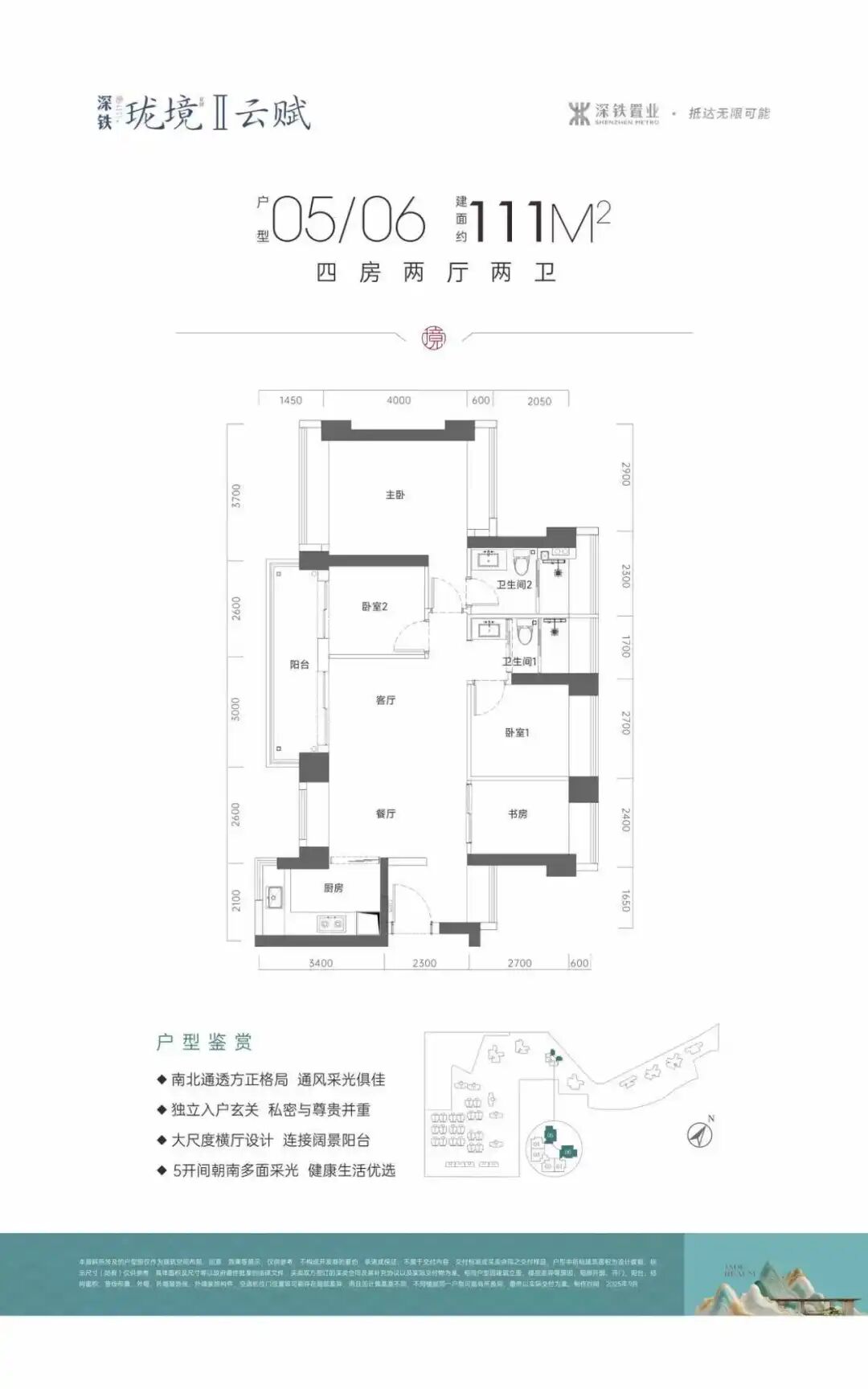 而111㎡的奢阔四房,南北通透的横厅格局,五开间朝南,客厅连接次卧出6.15米长的大阳台,部分户型可看阳台山景,着实是大众的“梦中情房”。