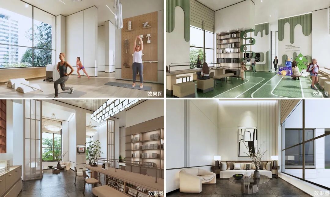 居住于此,社区匠心筑造6米层高架空层泛会所,打破空间界限,为业主营造出开放、通透的社交场域,无论是邻里闲谈、儿童游乐还是健身阅读,都能在此找到属于自己的一角。
