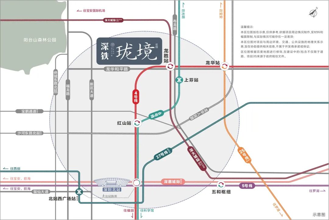 4号线龙胜地铁站就在家门口,从这里出发,深圳北站商务区、福田金融CBD,皆在30分钟舒适的通勤时间内。直线距离约800米还有6号线上芬站,通达福田、罗湖。