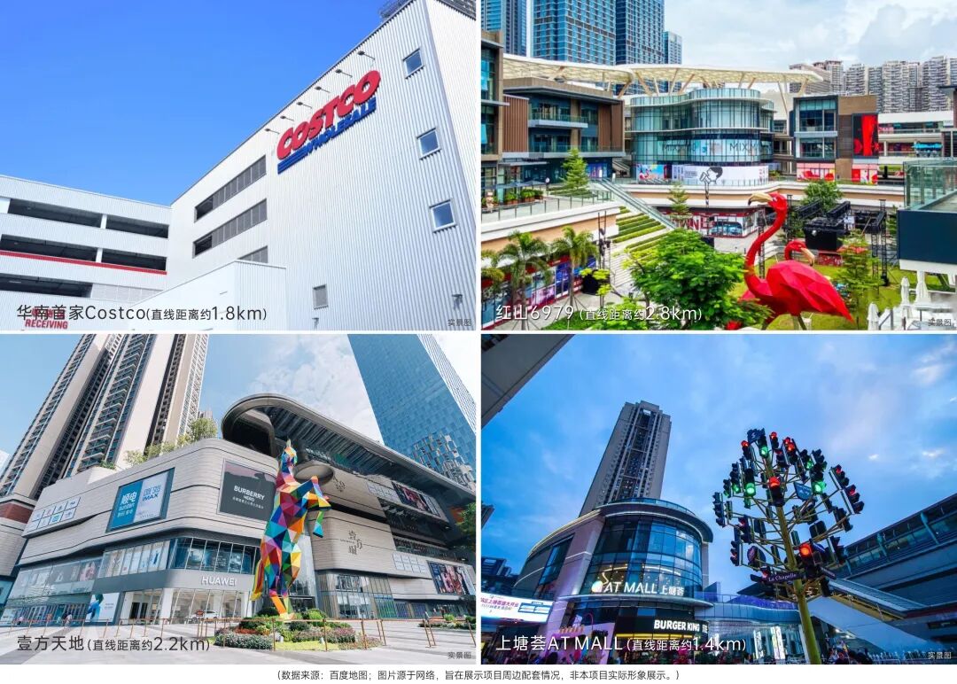 与项目直线距离约2公里范围内,约60万㎡的壹方天地、约4.45万㎡深圳首座Costco已开门迎客,约60万㎡龙华海岸城正在路上……再远一些,约13.4万㎡龙华北站超核万象商业(建设中),皆在5公里半径内。