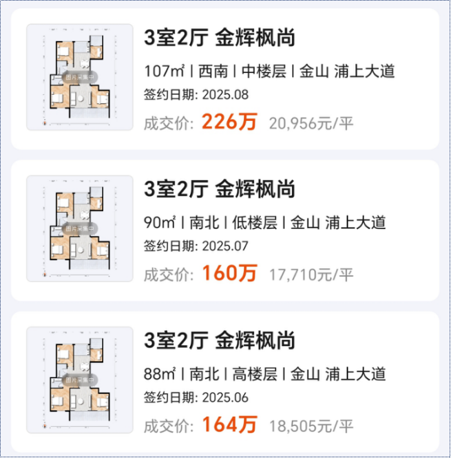 目前,金辉枫尚小区二手房的挂牌均价约2万/㎡,近几个月,该小区二手房成交价约1.7万/㎡-2万/㎡间。这也可见,“银行直供房”比二手房确实来得优惠,尤其进入二拍,优惠更显而易见。