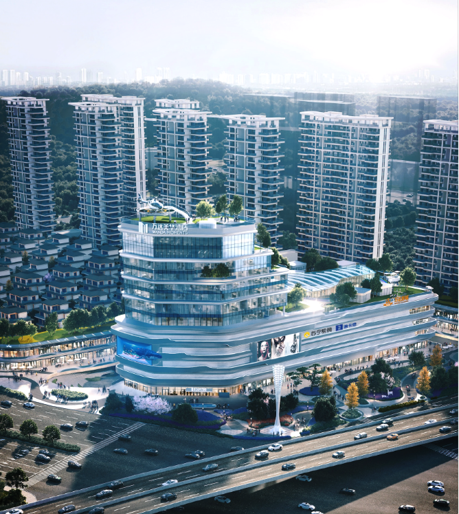 根据万达文旅规划院曝光的资料,该项目位于龙山公园附近,将公园的自然景观概念引入,把“山谷”与“绿道”融入建筑设计中。通过中庭、步道和绿色走廊的布局,打造一个集购物、休闲和自然体验为一体的开放式商业综合体。