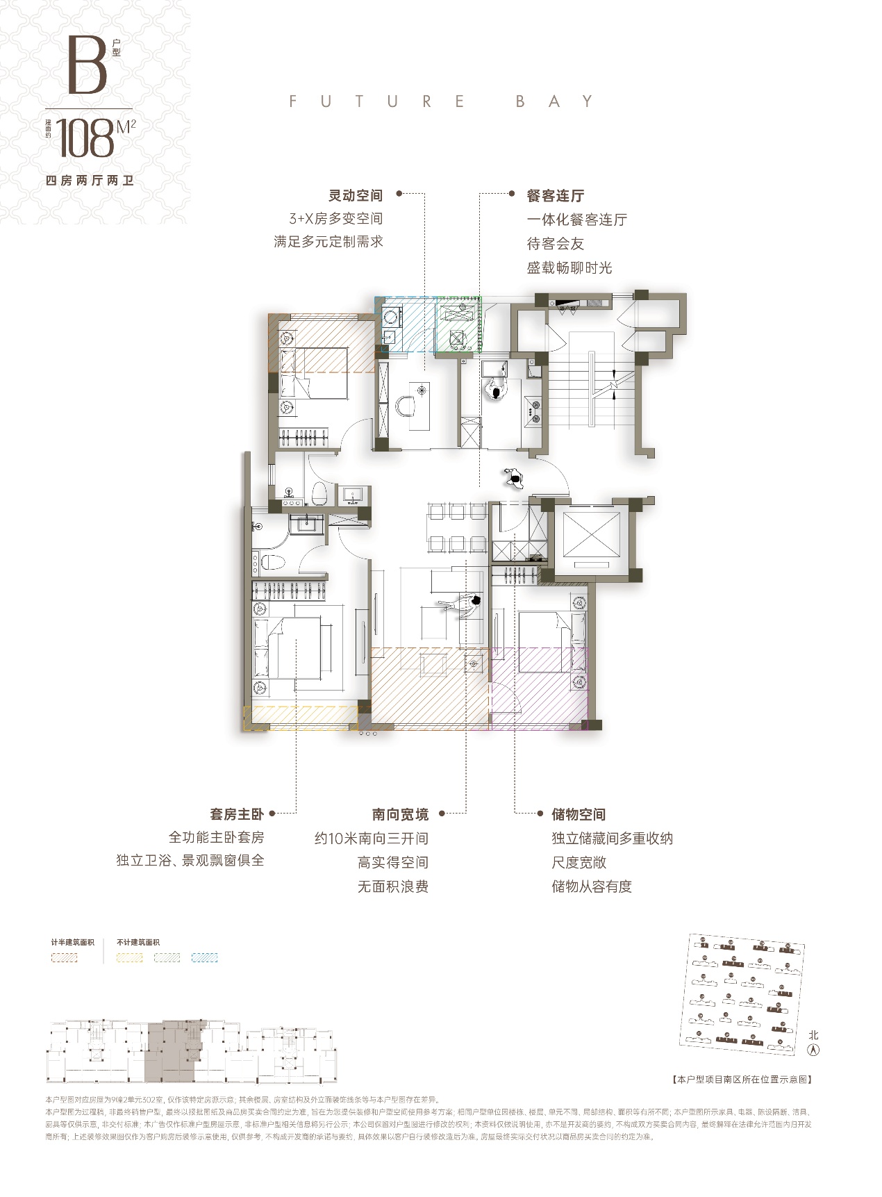 空间上采用 “无承重墙” 设计,得房率95%以上,每户均配备储藏间,收纳空间占比约15%。3+X多变户型、约10米南向三开间等设计,让空间可随生活阶段自由调整。
