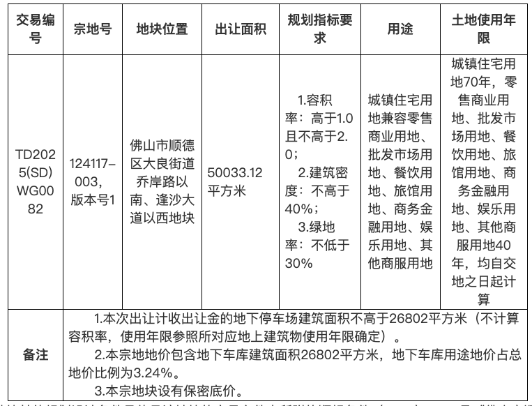 此外,宗地还指出,地块进入已运营佛山地铁3号线及规划建设的广州地铁26号线交通控制保护区内,须与地铁部门进行充分沟通。