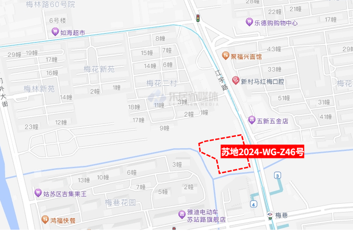 项目所在苏地2024-WG-Z46号地块,位于苏州市姑苏区平江街道江宇路西,规划支七路南,地块于2025年1月17日由苏州荣和工程建设有限公司底价竞得,成交总价22373万元,成交楼面价约18022元/㎡。