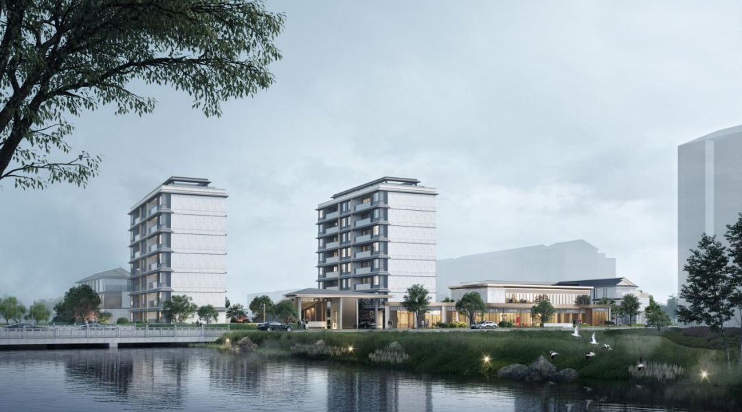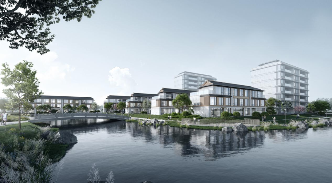 项目容积率1.05,拟建11幢住宅,包括9幢3F联排别墅和2幢8F洋房。联排别墅沿河排布,规划有河岸慢行步道,环境十分静谧。