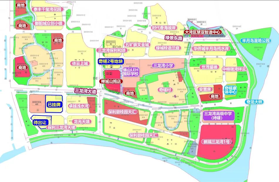 该项目就位于禅城奇槎核心板块,地处三龙湾大道北侧,南临保利碧桂园天汇、西挨依云上城,东侧即为佛山LEH国际学校。
