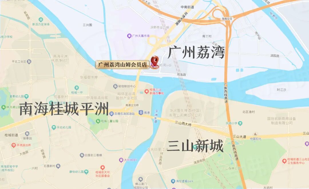 地图上看,该店与桂城平洲仅一桥之隔,桂城内约10-30分钟车程可达。