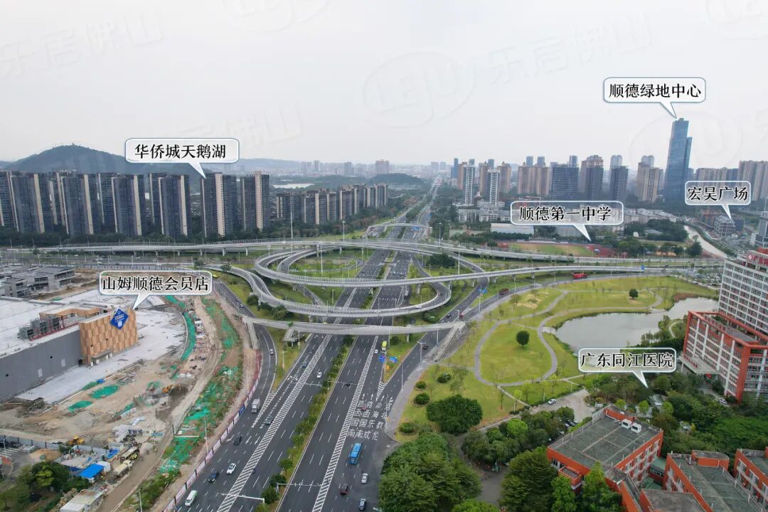 从位置来看,项目位于大良东部新城,毗邻顺德快速路,周边建有顺德华侨城天鹅湖、电建洺悦华府、华侨城天鹅堡二期等多个住宅小区,南侧还有顺控·珺璟项目待入市。