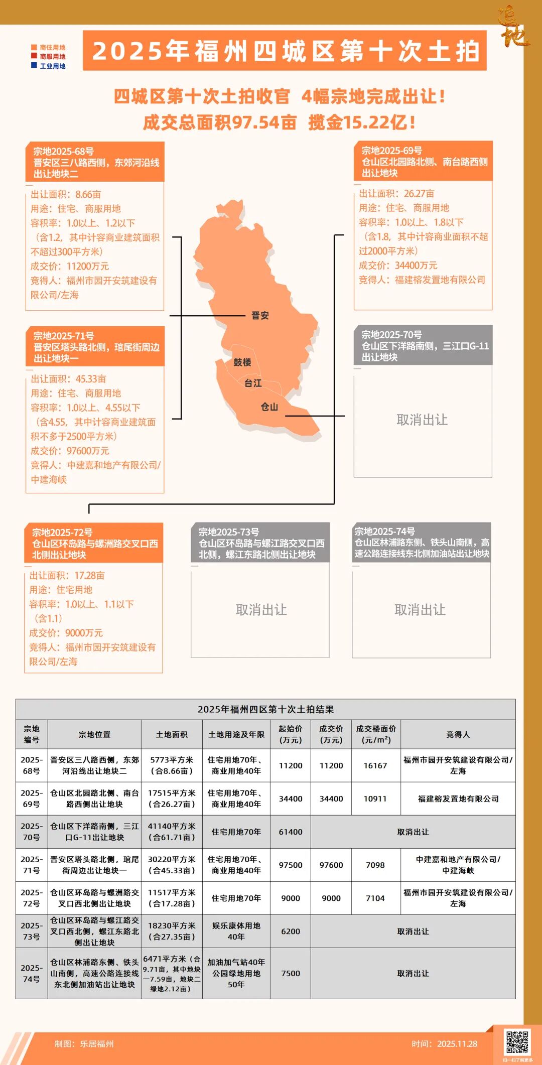 福州四城区第十次土拍卖地15.22亿!7幅地块取消3幅,国央企包圆了剩余4幅!
