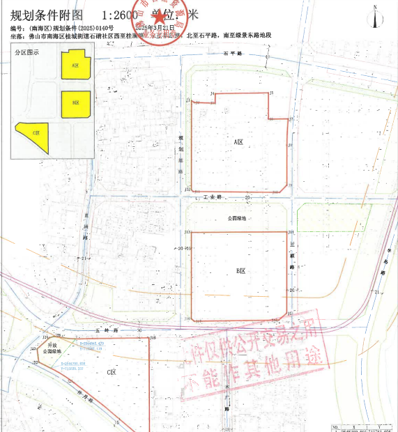 1、竞得人须配建A区、B区北侧的东西向规划道路(工业路),宽20米,长度约406米;须配建A区、B区之间的南北向规划道路(三联路),宽20米,长度约219米;