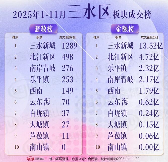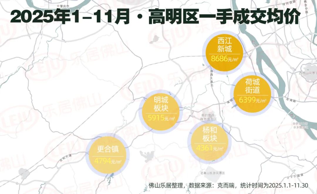注:以上数据来自克而瑞广佛区域为佛山2025年1-11月住宅成交数据,不含别墅仅供参考