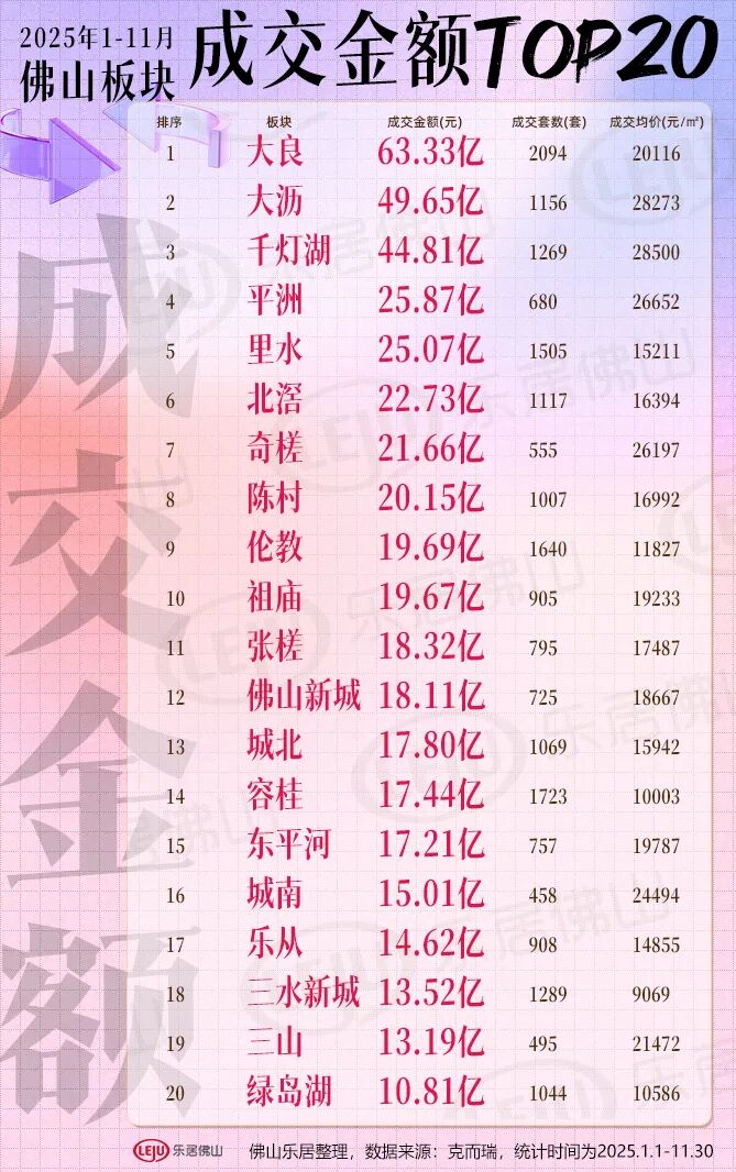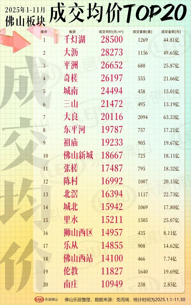 2025年前11月佛山楼市成交榜来了!