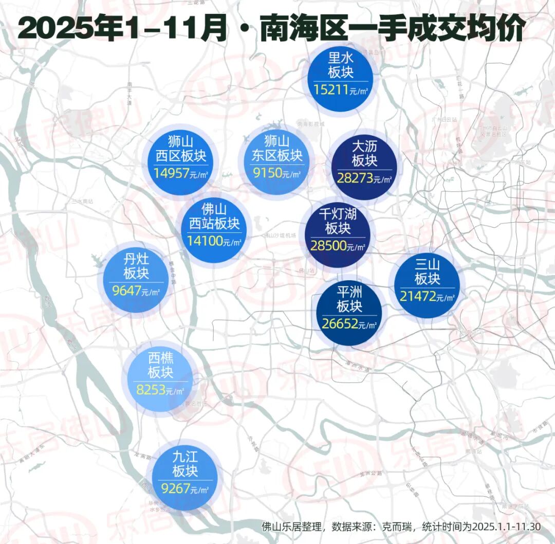 南海区的大沥、平洲以28273元/㎡、26652元/㎡位列二三。