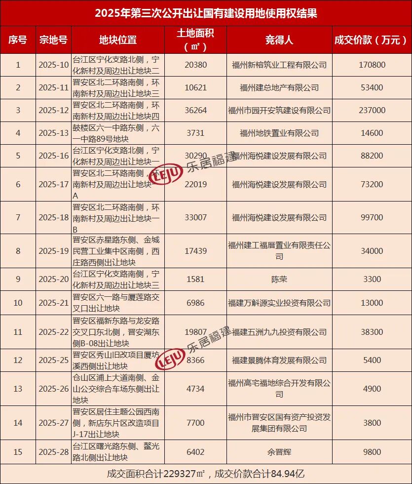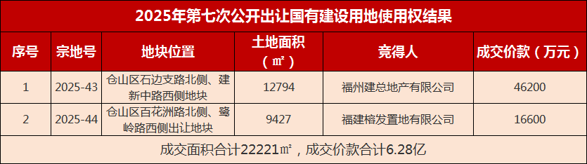竞得企业: 福建省榕发筑地建设发展有限公司+莆田海悦建设有限公司