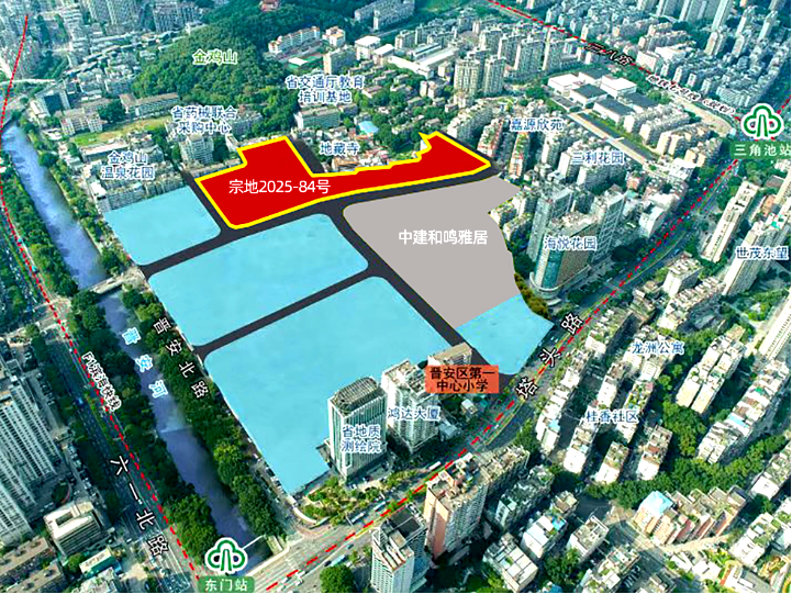规划指标显示,宗地2025-84号地块选址面积29417㎡,其中出让面积28433㎡(合42.65亩),容积率4.03,其中计容商业建筑面积不超过2000㎡,建筑限高100米,起始总价8.12亿。