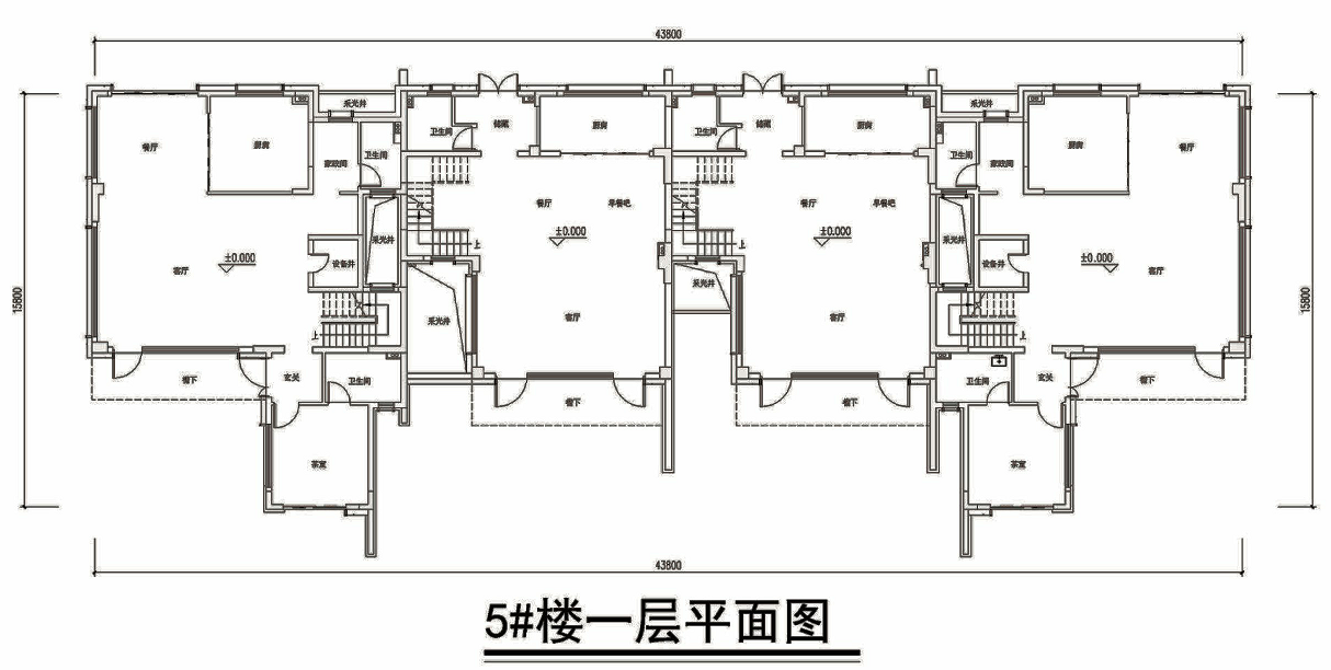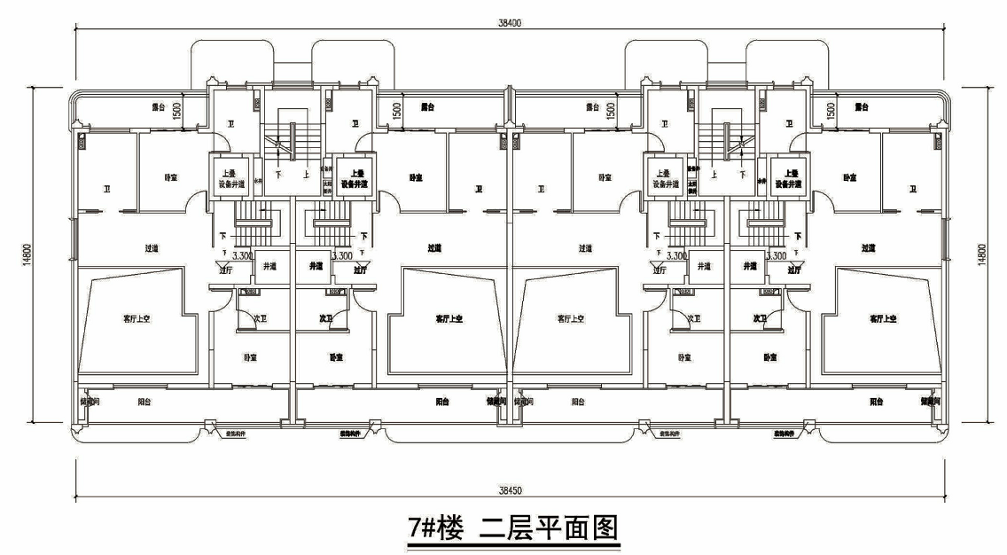 4-6F叠加别墅。层高,下叠首层3.3米、二层3.15米;上叠三层3.15米、四层3.3米。