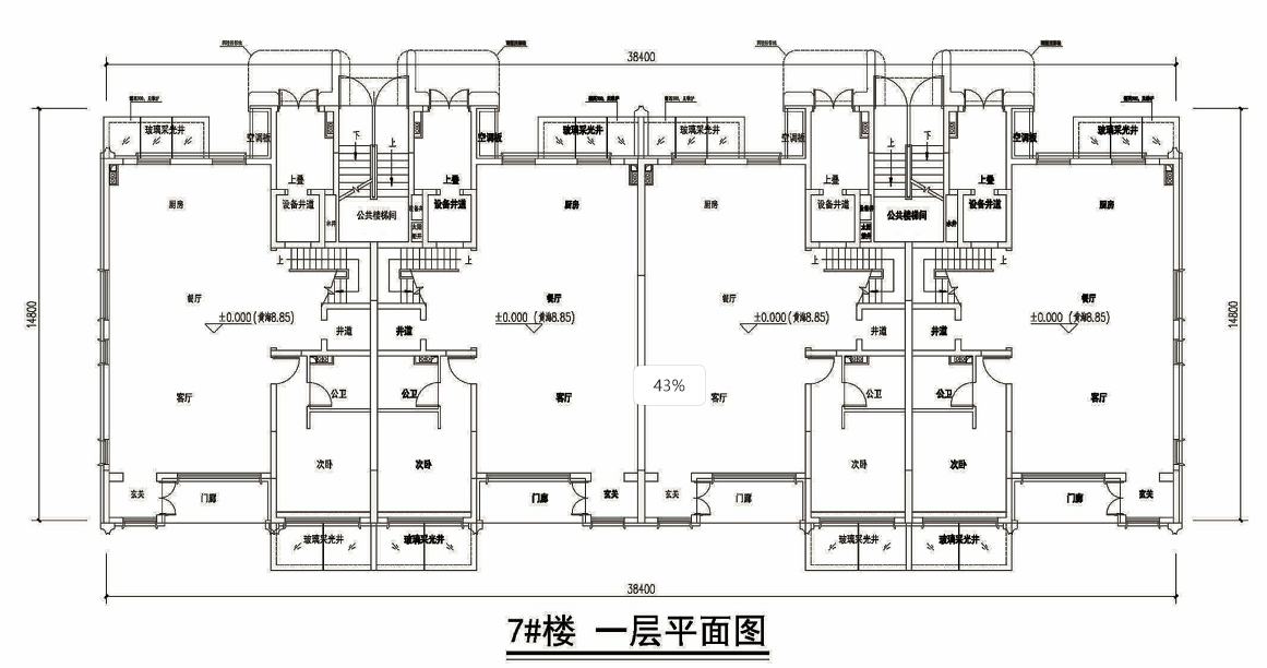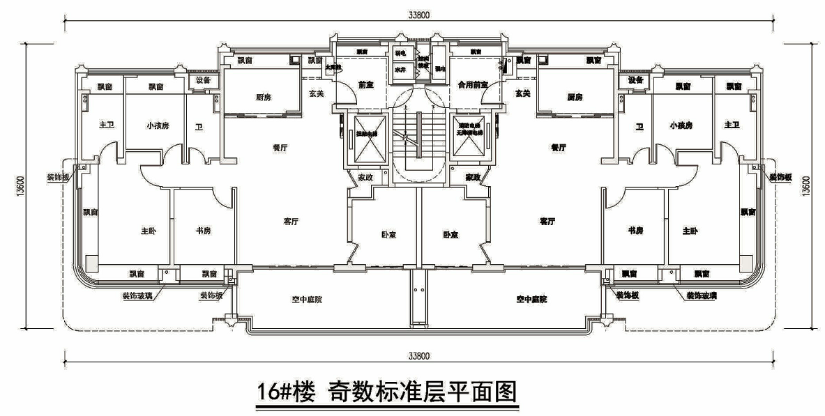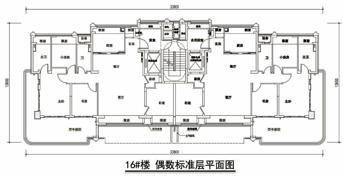 标准层高3.1米,两梯两户,一层仅两户的低密大平层。