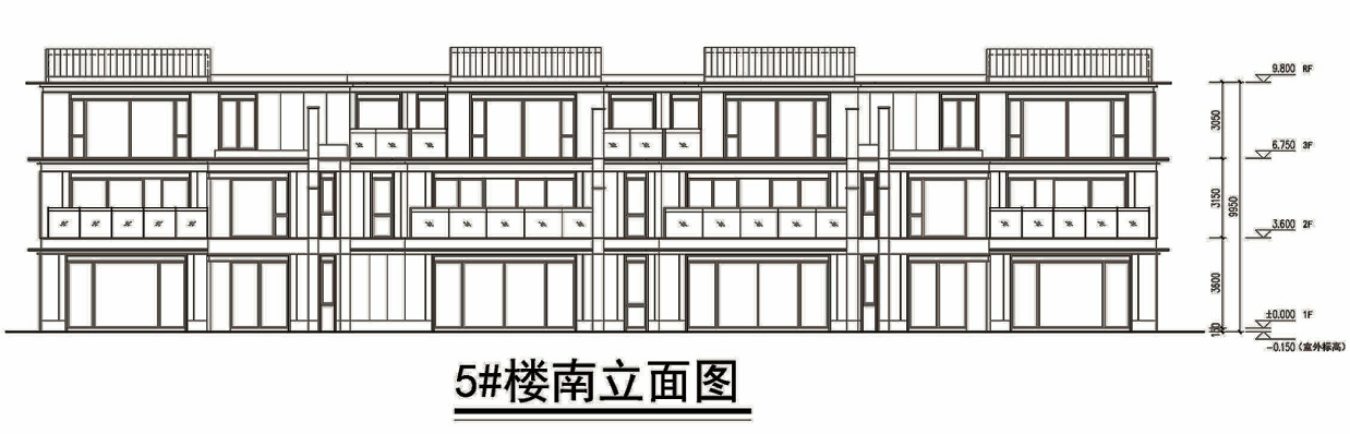 3F联排,层高分别为3.6、3.15、3.05米。