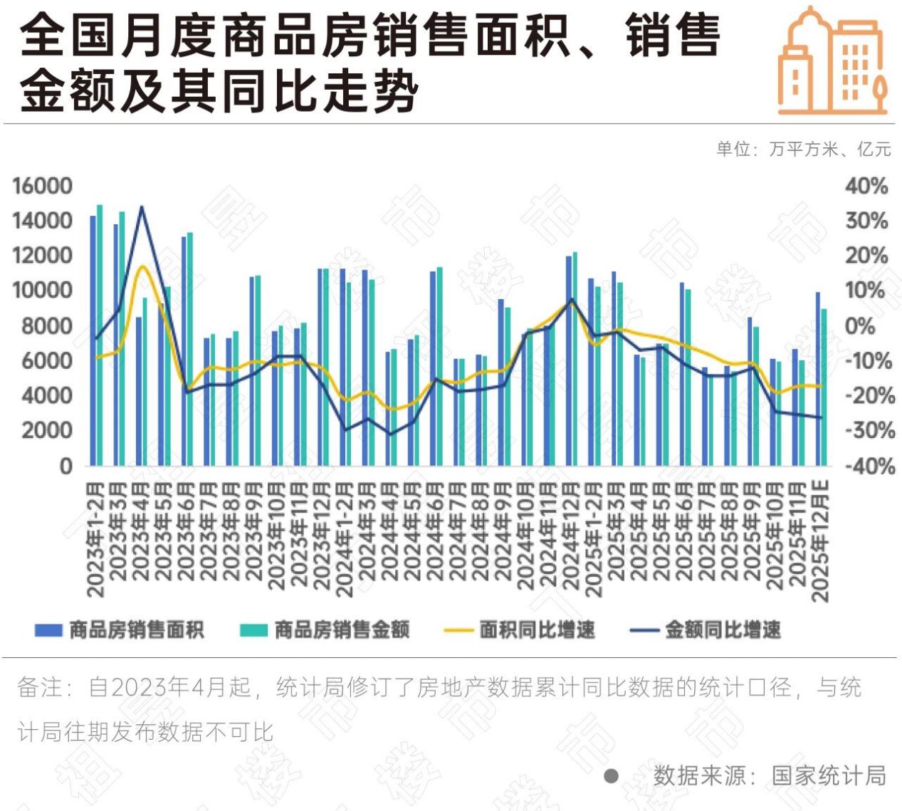 2025年即将过去,从全年商品房成交规模来看,降幅较2024年显著收窄,预计全年销售面积达8.9亿平方米、销售金额8.4万亿元,分别同比下降9%和13%,其中销售面积降幅较上年收窄约4个百分点。