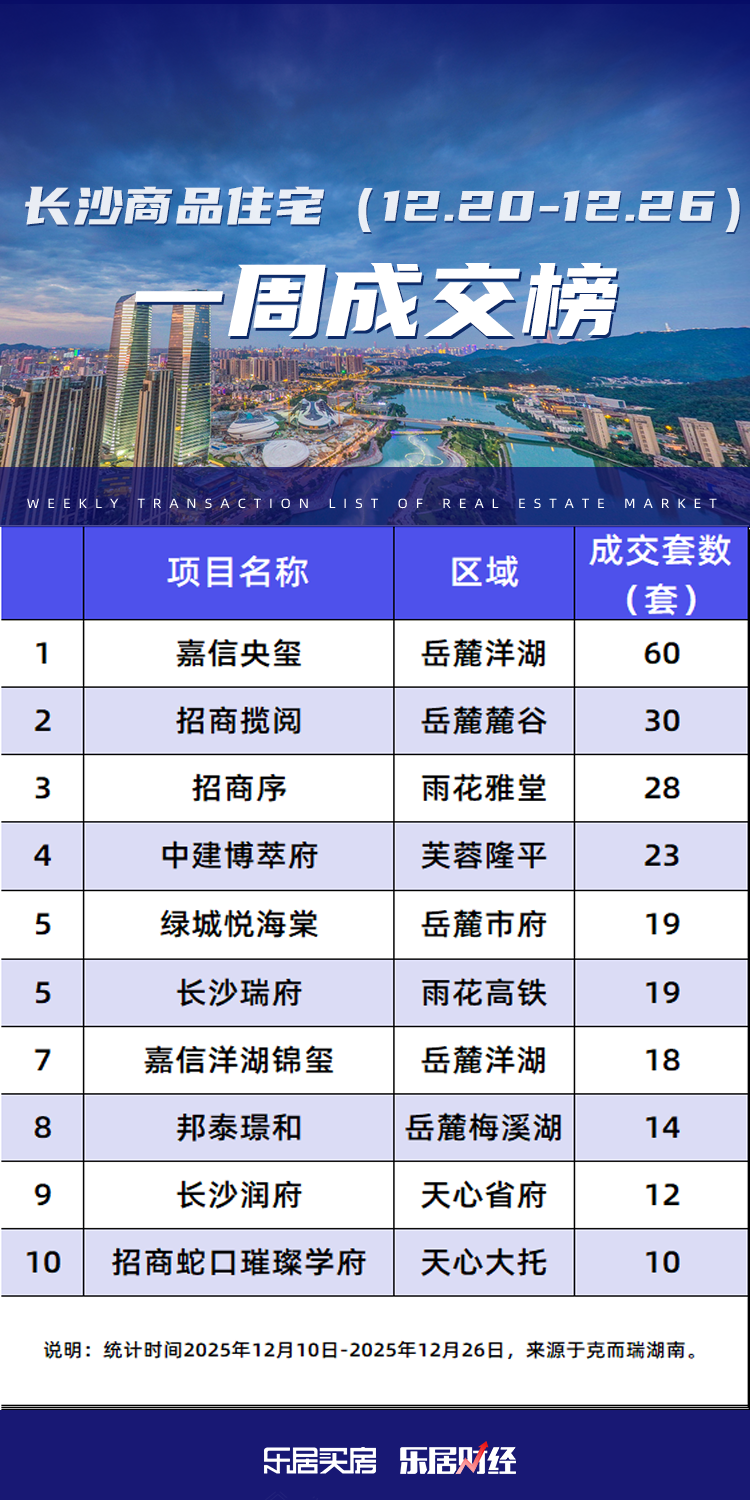 其中位于榜单前三位的分别为、岳麓区洋湖板块的嘉信央玺、岳麓区麓谷板块的招商揽阅、雨花区雅堂井湾板块的招商序,分别成交133套、19套、17套。