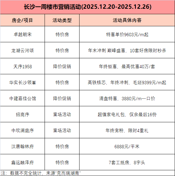 市场成交|12月第四周长沙新房成交454套 年终房企特价、让利活动增多