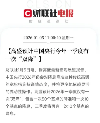 国际投行高盛也在近期报告中呼应了这一预期。其预测认为,中国人民银行可能在2026年第一季度实施一次“双降”组合拳,包括50个基点的存款准备金率下调和10个基点的政策利率下调,并在三季度可能再度降息10个基点。尽管机构预测不等同于官方行动,但其判断增强了市场对货币政策即将发力的一致预期。