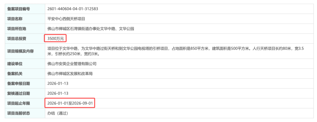 近日,乐居获悉,佛山平安中心西侧天桥项目备案通过。