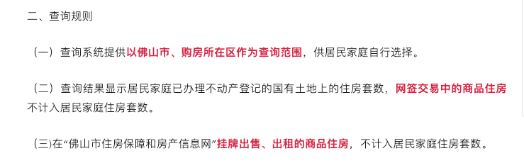 注:在家庭住房套数查询范围方面,佛山市以区为查询范围确定纳税人家庭住房套数。