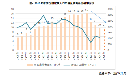 过去20年,我国城镇化率从2005年的43%升至2024年的67%,带动2017-2021年新房成交面积持续超15亿平方米。但随着城镇化进入稳定发展期,2022年起城镇人口年增量降至1500万以下,叠加出生人口下降、人均住房面积接近40平方米,刚需向二手房转移,新房市场驱动力转向改善性需求与住房更新。