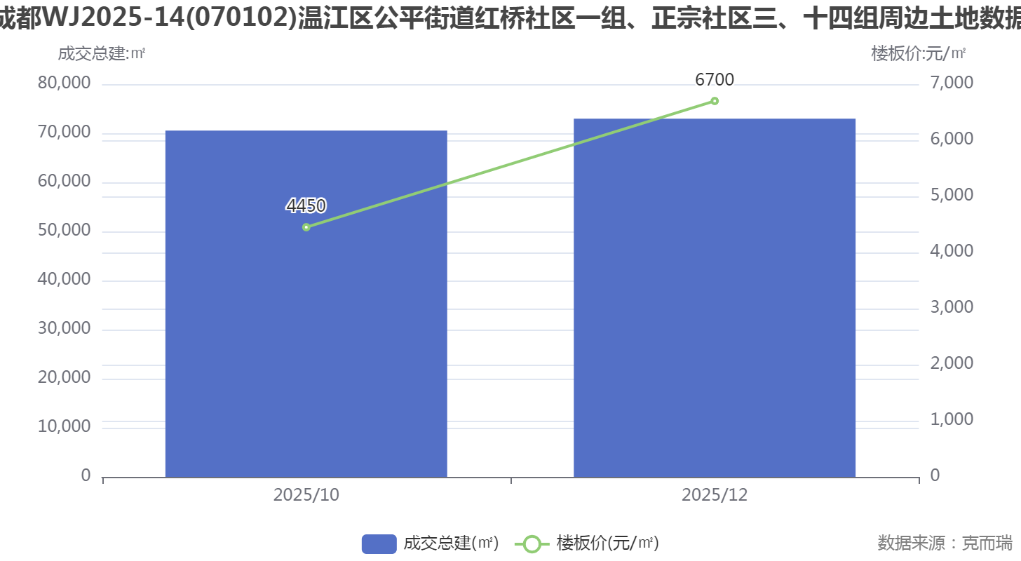 从图表可见,该区域最近两宗成交地块的楼面价分别为4450元/㎡和6700元/㎡,而本次拍卖的WJ2025-14地块起拍价正是6700元/㎡,与上一宗持平,显示出政府对区域地价的稳定预期。