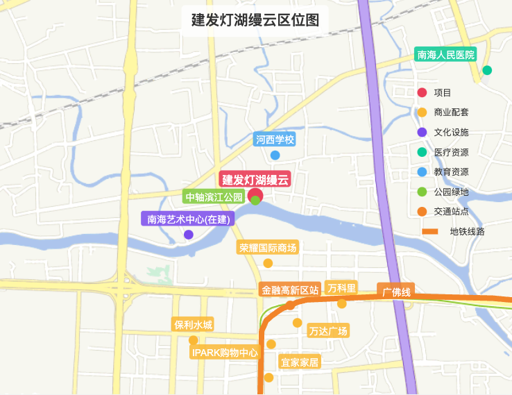 其地段位于南海大沥千灯湖畔,属官方划定的“泛千灯湖区域”,更具体地处“南海之眼”旁的滨江居住带,被业内称为“黄金S湾”。该区域拥有约6公里南向江岸线,项目距江面仅约50米,且前方无任何遮挡,具备头排、南向、一线望江的稀缺属性,在整个佛山乃至广佛区域都极为罕见。