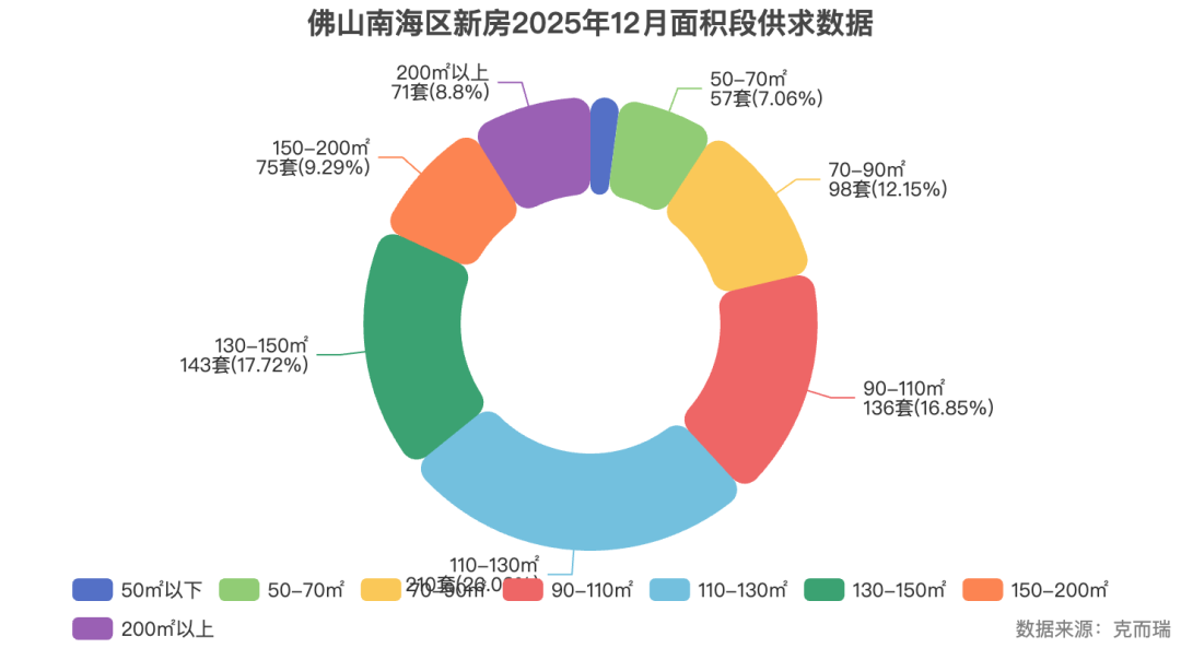 首先,从面积段成交结构看,2025年12月,佛山南海区200㎡以上的大户型成交套数占比虽小,但成交金额贡献巨大。建发灯湖缦云正是踩中了这一趋势,其主力产品集中在200㎡以上(建面),精准匹配了高购买力客群的需求。