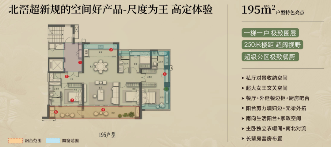 此外,195㎡户型不仅是双厅和主卧南北对流,还多出私厅对景收纳空间等。
