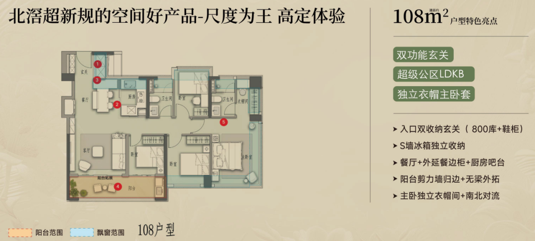 产品方面,项目将推出108-195㎡新规四房产品,所有户型均为四房两厅两卫设计,使用率达100%。其中,108㎡户型配套入户双收纳玄关,主卧270°飘窗等。
