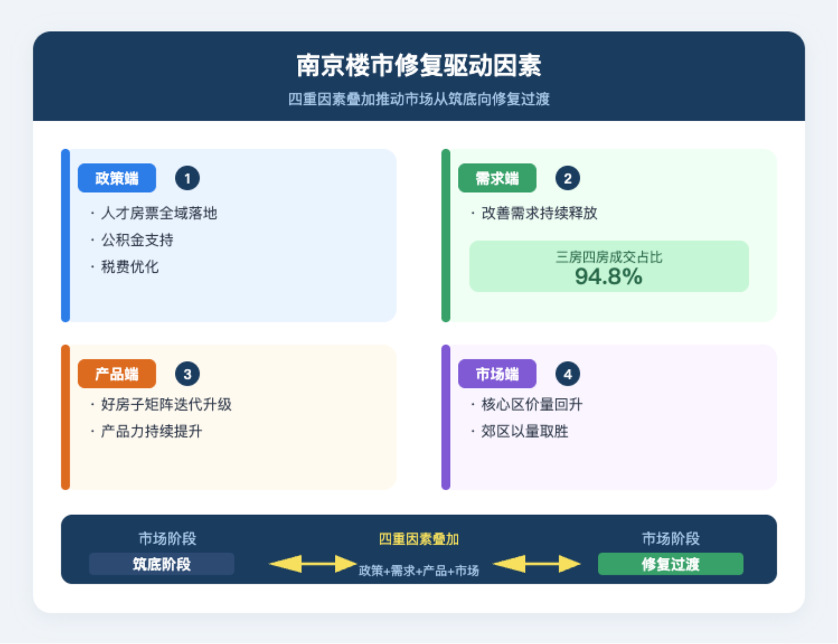 2026 年一季度南京楼市修复趋势明确,但市场全面、持续的复苏仍需宏观经济环境的配合以及居民收入预期的改善。从历史经验看,南京作为前期经历深度调整的二线城市,其修复趋势具有重要参考价值。