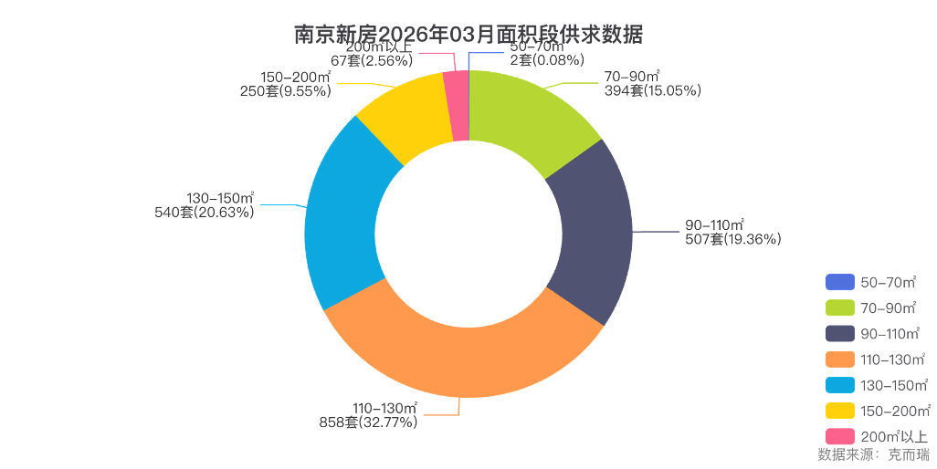 数据解读:据克而瑞数据显示,110-130㎡面积段成交858 套,占比最高,其次为 90-110㎡的507 套。120㎡以上改善型产品成为市场绝对主流,反映南京主城区住宅市场正经历深刻的"脱刚化"转型。购房决策应重点关注核心区域优质资产,其具备较强价格支撑。