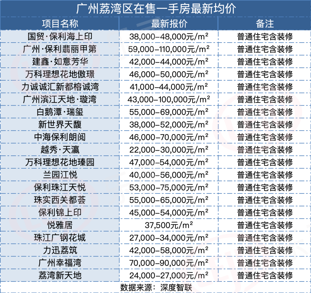 图源:广州贝壳而放眼整个荔湾区,一手房均价更是最高冲到9万/㎡。