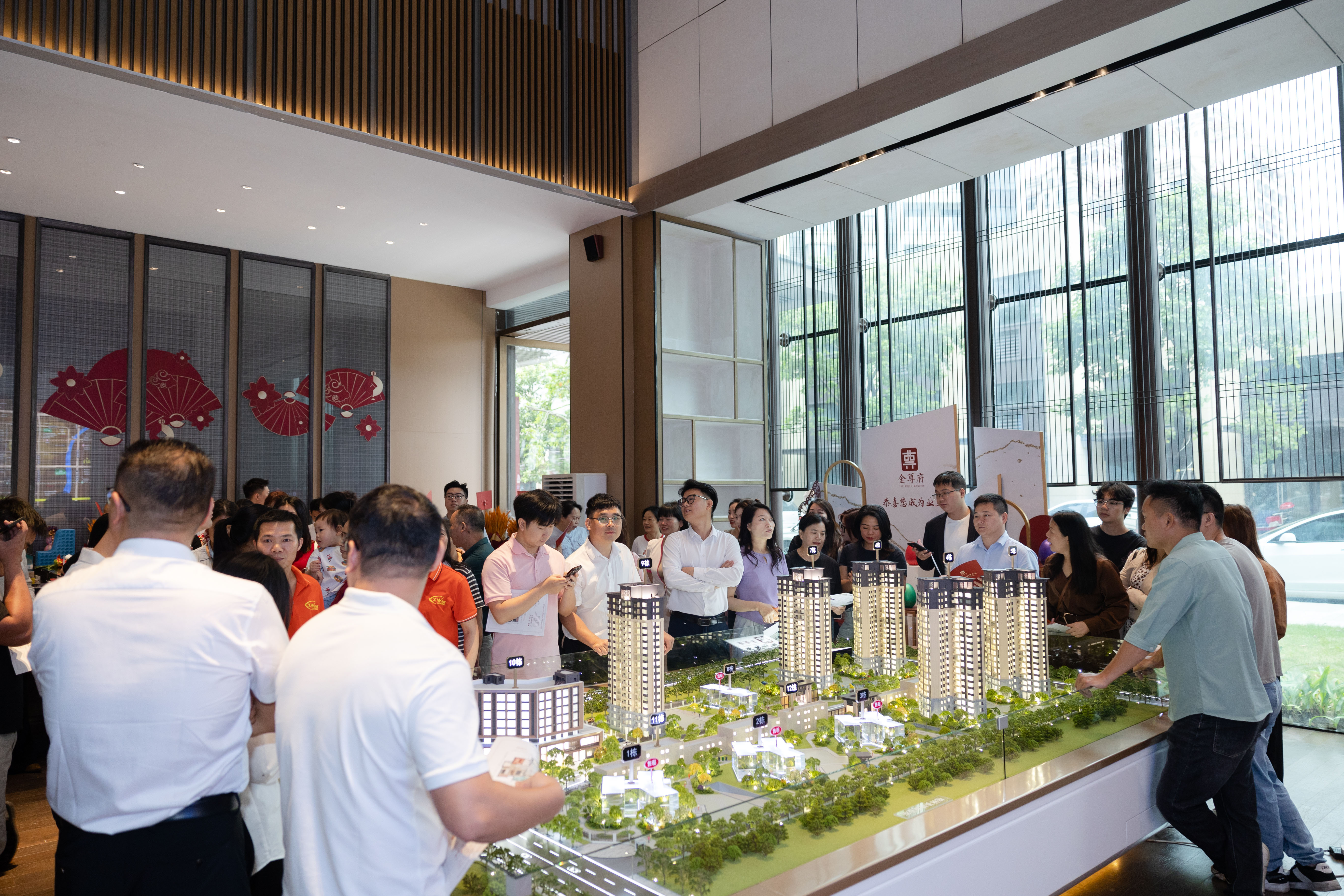 开盘当日营销中心人气鼎盛,咨询、看房客户络绎不绝,当日已有20余组客户完成登记,实景现房、产权清晰、地段优越是客户选择核心原因。