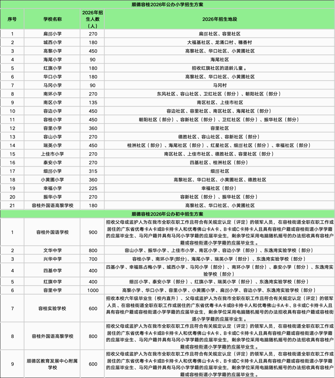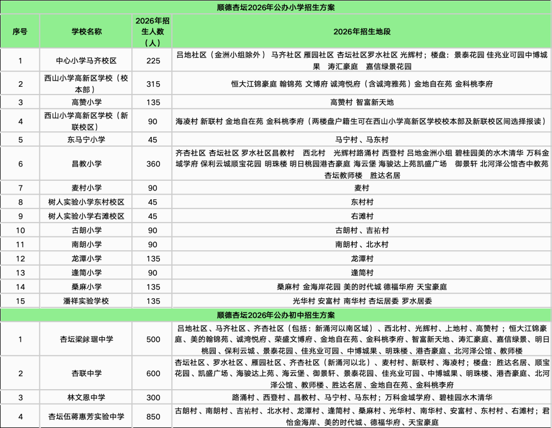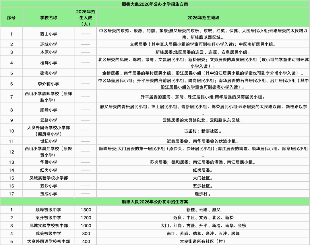 齐了!顺德十镇街招生方案公布!多所学校整合调整!部分学区有变
