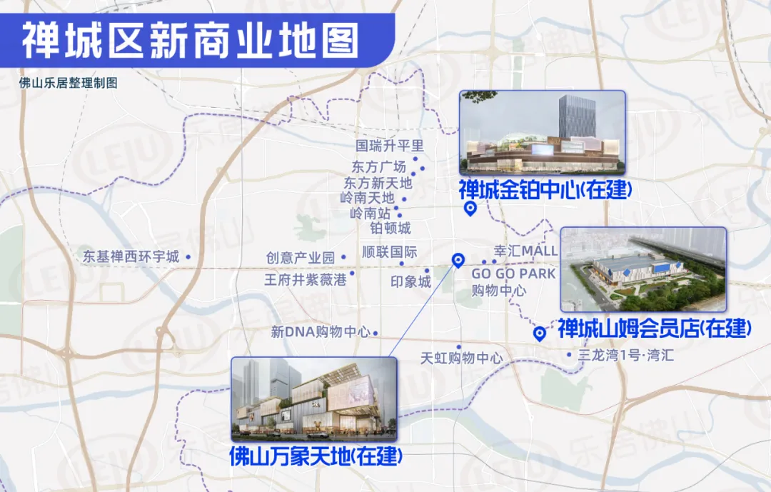 岭南新天地、天虹广场、新DNA、金铂中心等成熟商业加持,山姆会员店、佛山万象天地、禅城金铂中心即将落成,超50万㎡商业集群成型。
