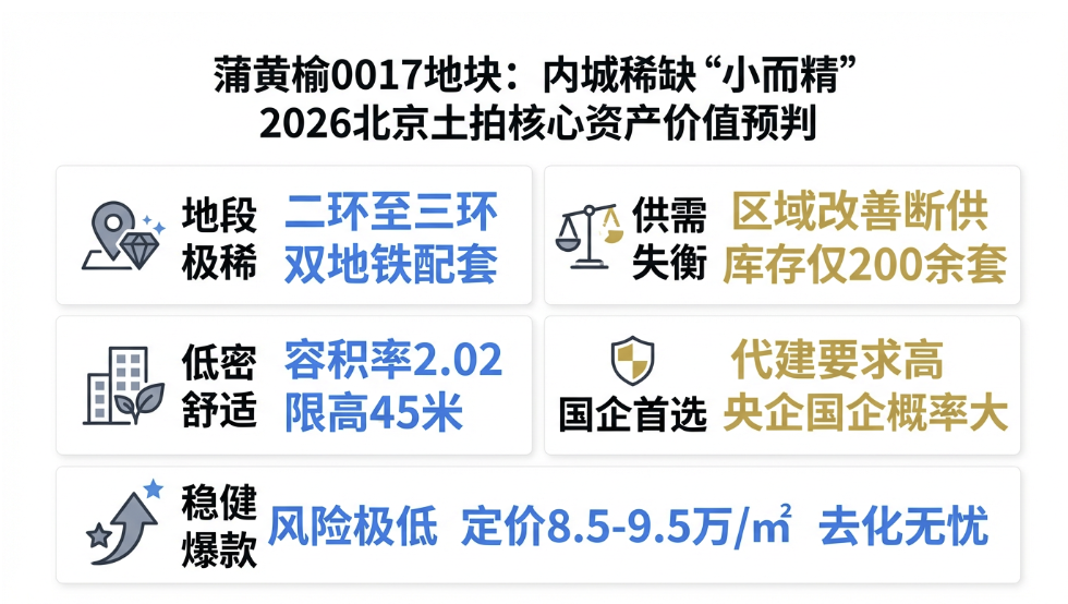 2026北京土拍,真正能闭眼拿的内城好地不多。丰台区蒲黄榆一里、四里危改FT00-0506-0017地块一挂出,就注定是全场焦点——二环至三环之间、双地铁、成熟配套、小体量、低密,还带着明确代建要求,是典型“小而精、稳赚、快销”的核心区稀缺宅地。