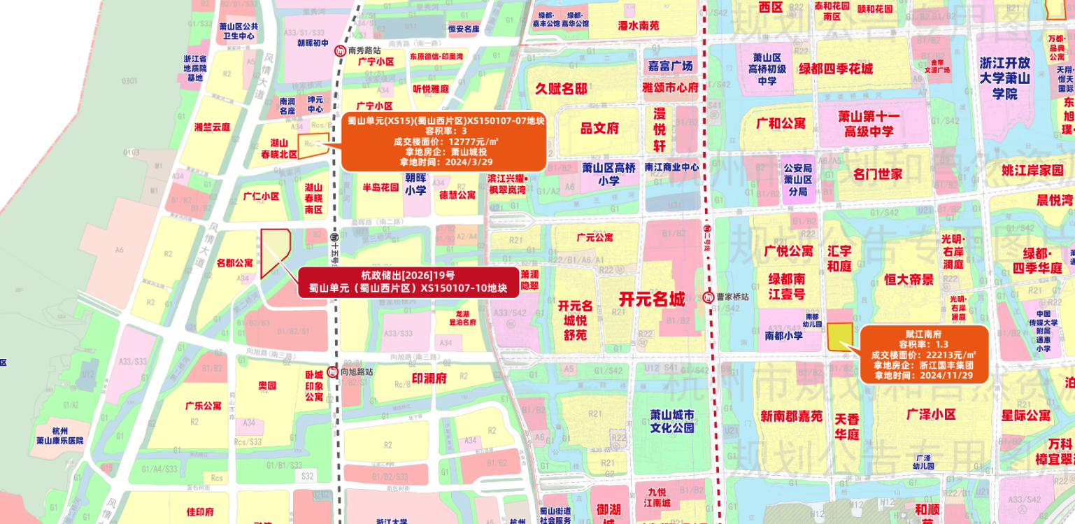 萧山蜀山板块、临安滨湖新城,本次出让的都是低密宅地。