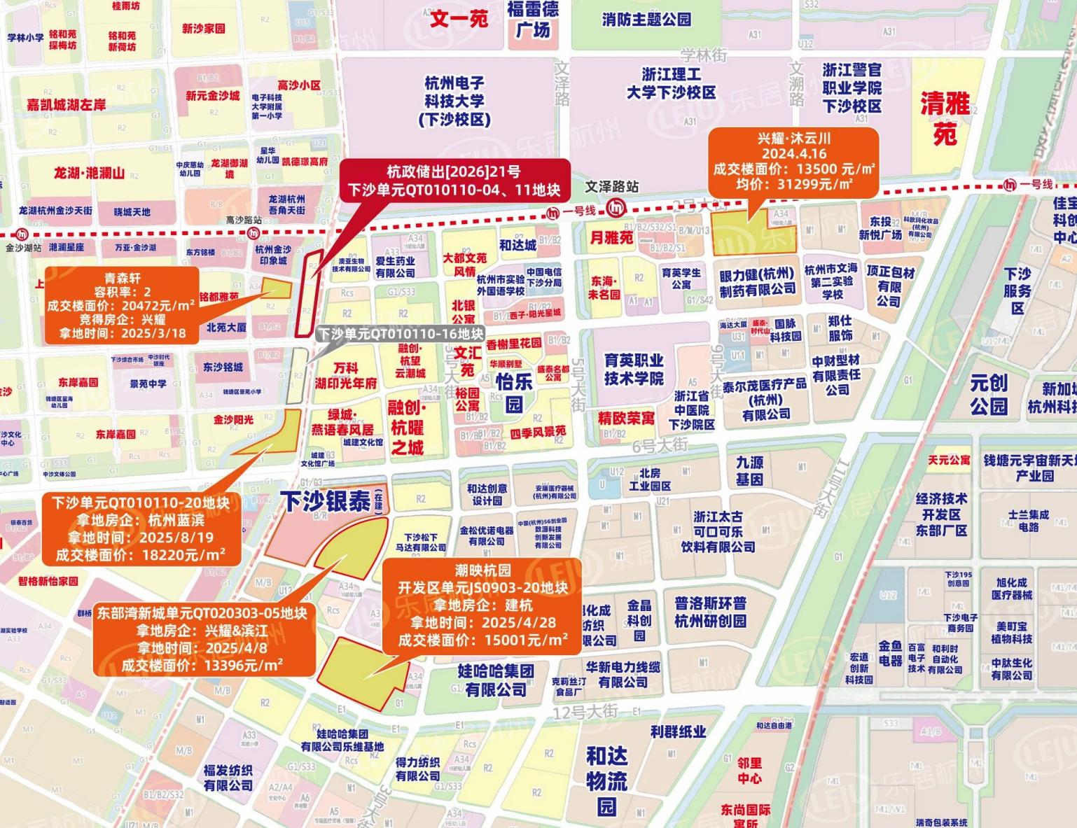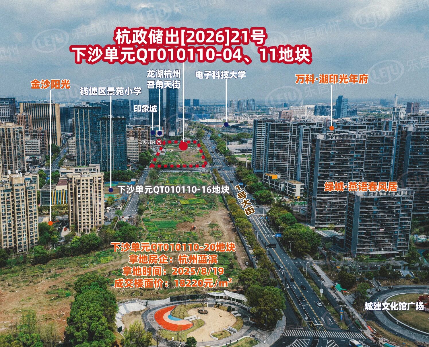 下沙单元QT010110-04、11地块,交通和商业配套优势突出。