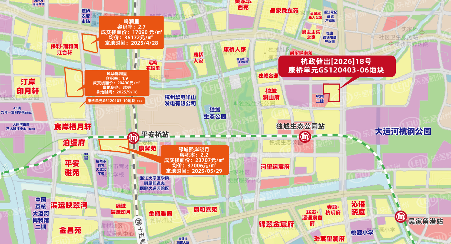 康桥单元GS120403-06地块,是杭钢区块推出的首宗宅地,用地面积17863㎡,可建面积32153㎡,容积率1.8。