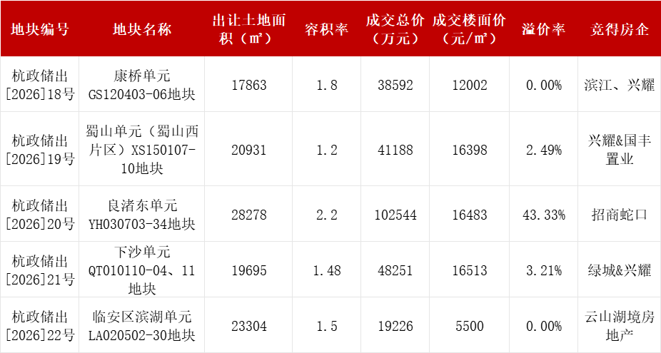 杭州一口气出让5宗宅地!兴耀连夺3宗!招商高溢价拿下城北临湖宝地