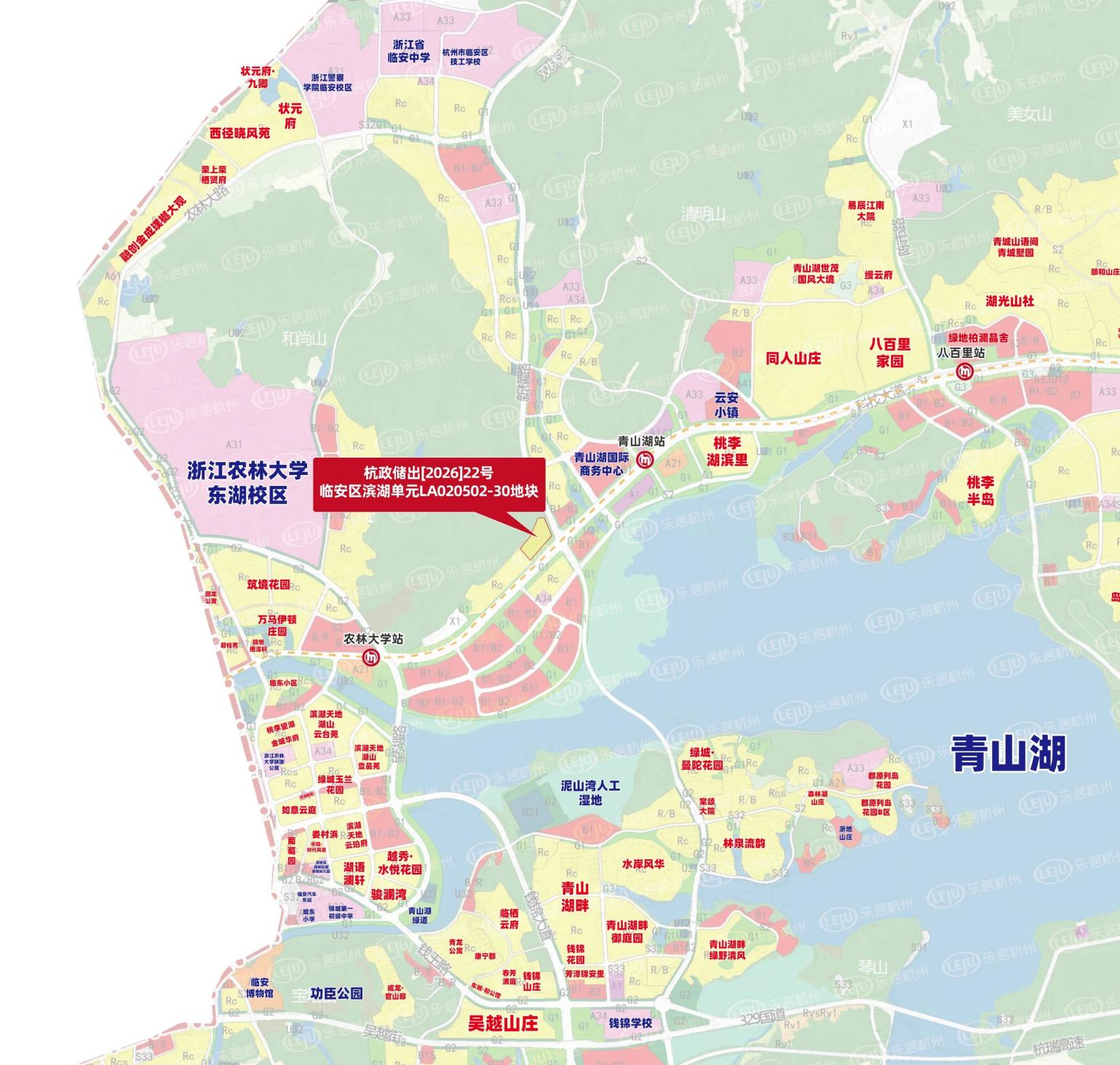 临安区滨湖单元LA020502-30地块,距离地铁16号线青山湖站约850米,出行便捷,同时紧邻青山湖景区,周边还有青山湖国际科创中心、临安市民中心等商业及公共配套。