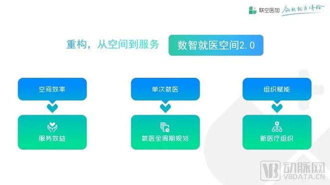 随着探索进一步深入,联空网络意识到单纯释放医院物理空间是不够的,需要最大程度放大医院的医疗服务能力。2022年,联空网络推出了数智就医空间2.0方案,在实现空间效率提升的基础上,开始关注医院服务效益的提升;从关注单次就医到更加关注就医全周期规划;从关注组织赋能到关注基于移动互联网构建起新的医疗组织。联空网络希望通过2.0解决方案的提供,不仅实现空间效率的提升,更重要的是实现医院医疗服务组织方式的重构和服务模式的重构,最大化提升医疗服务效率和效益。